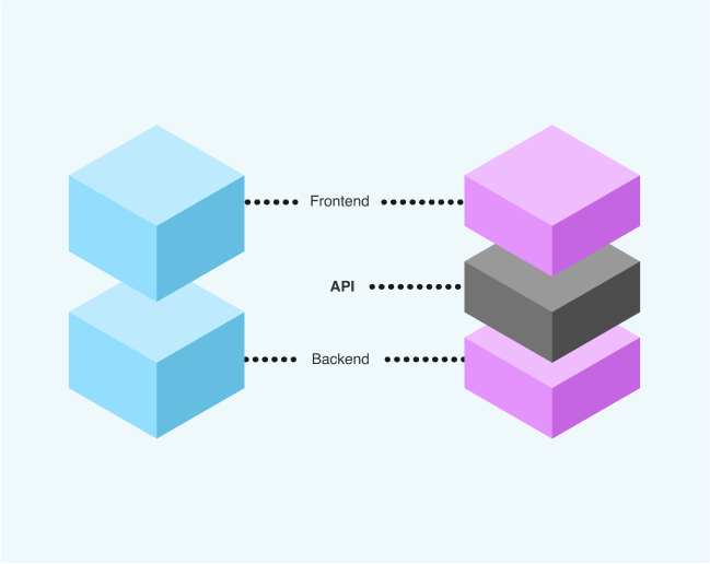 É a separação entre front-end e back-end, permitindo criar interfaces personalizadas sem impactar a lógica da operação.