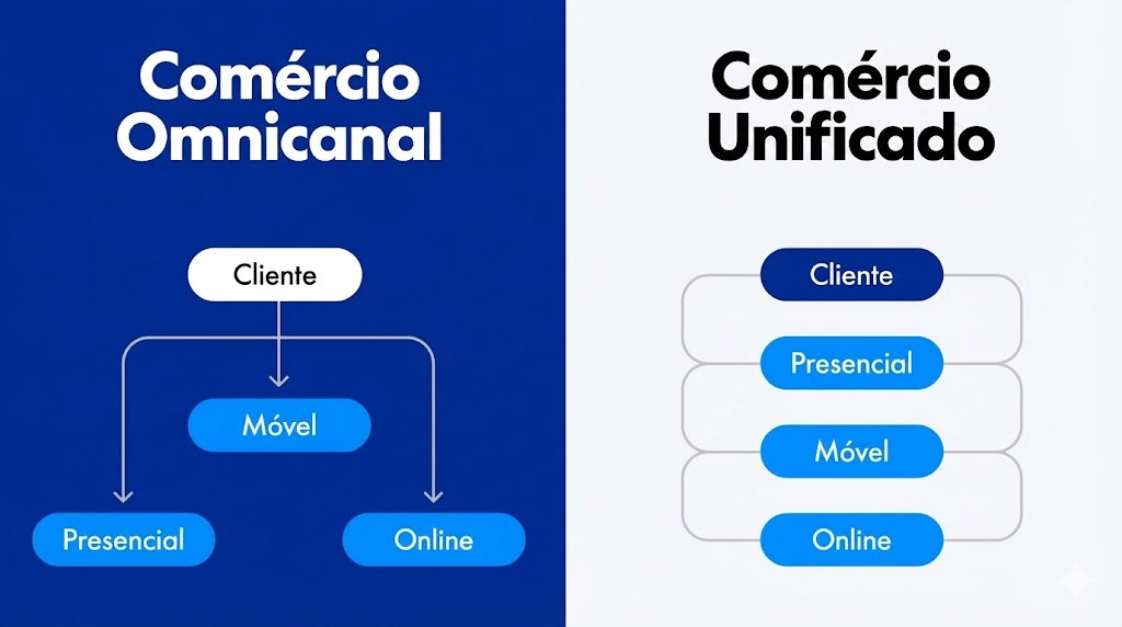 O omnichannel melhora a comunicação entre canais. Unified Commerce unifica a operação inteira.